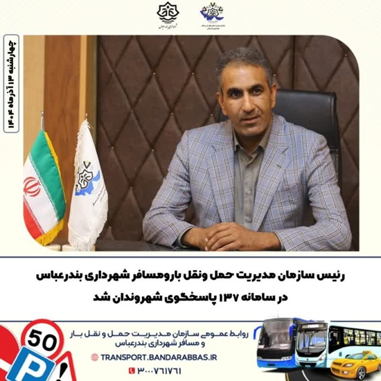 رئیس سازمان مدیریت حمل ونقل بارومسافر شهرداری بندرعباس،در سامانه ۱۳۷ پاسخگوی شهروندان شد
