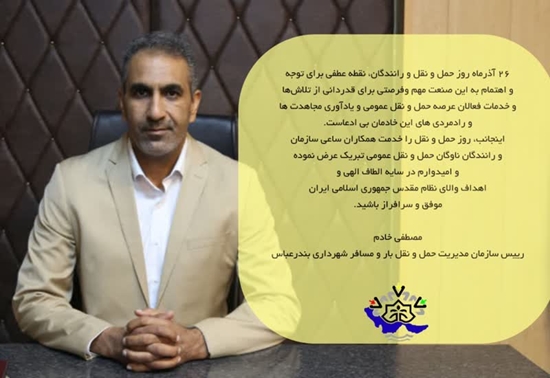 پیام تبریک رئیس سازمان مدیریت حمل و نقل بار و مسافر شهرداری بندرعباس به مناسبت روز حمل و نقل