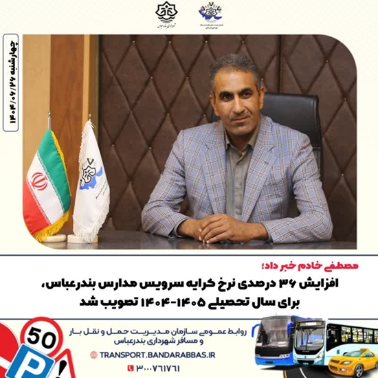 رئیس سازمان مدیریت حمل ونقل بارومسافر شهرداری بندرعباس گفت: نرخ کرایه سرویس مدارس برای سال تحصیلی ۱۴۰۵-۱۴۰۴ با تصویب شورای اسلامی شهر بندرعباس،۳۶ درصد افزایش یافت.