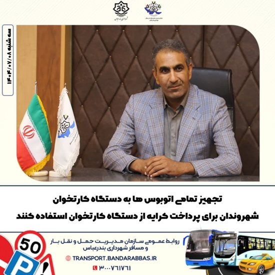 به گزارش روابط عمومی سازمان مدیریت حمل ونقل بارو مسافرشهرداری بندرعباس،مصطفی خادم با تاکید بر اینکه پرداخت وجه نقد در اتوبوس ها ممنوع میباشد، اظهار کرد: تمامی اتوبوس ها در سطح شهر به دستگاه های کارتخوان جهت دریافت کرایه خود،تجهیز شده اند.